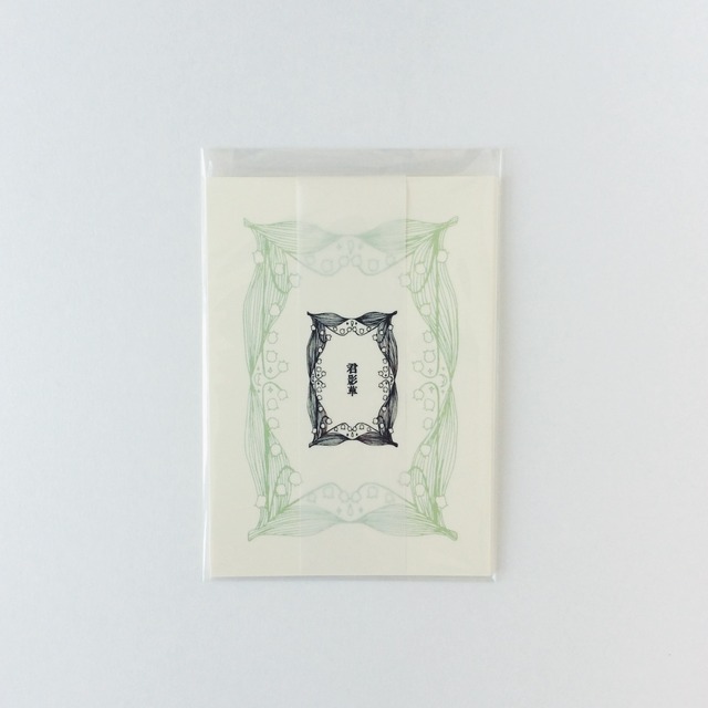 童話や物語をモチーフに紙モノを製作する久奈屋さんのレターセット。 しっとりとした質感の便箋と洋封筒、オリジナルのラベル、封緘紙とマス目の下敷きのセットになります。縦書き横書きどちらにもお使い頂けます。 君影草とは、スズランこと。 ピスタチオ、若緑、白群(びゃくぐん)、空色の便箋と、 日陰色(グレー)の封筒、便箋とお揃いの図案を若緑と白群で描いた封緘紙も添えられています。 便箋 /210×148mm 4色×各2枚、計8枚・下敷き×1枚 封筒/162×113mm /2枚 ラベル /70×50mm/×2枚 50×40mm/×2枚 封緘紙/25mm /2枚