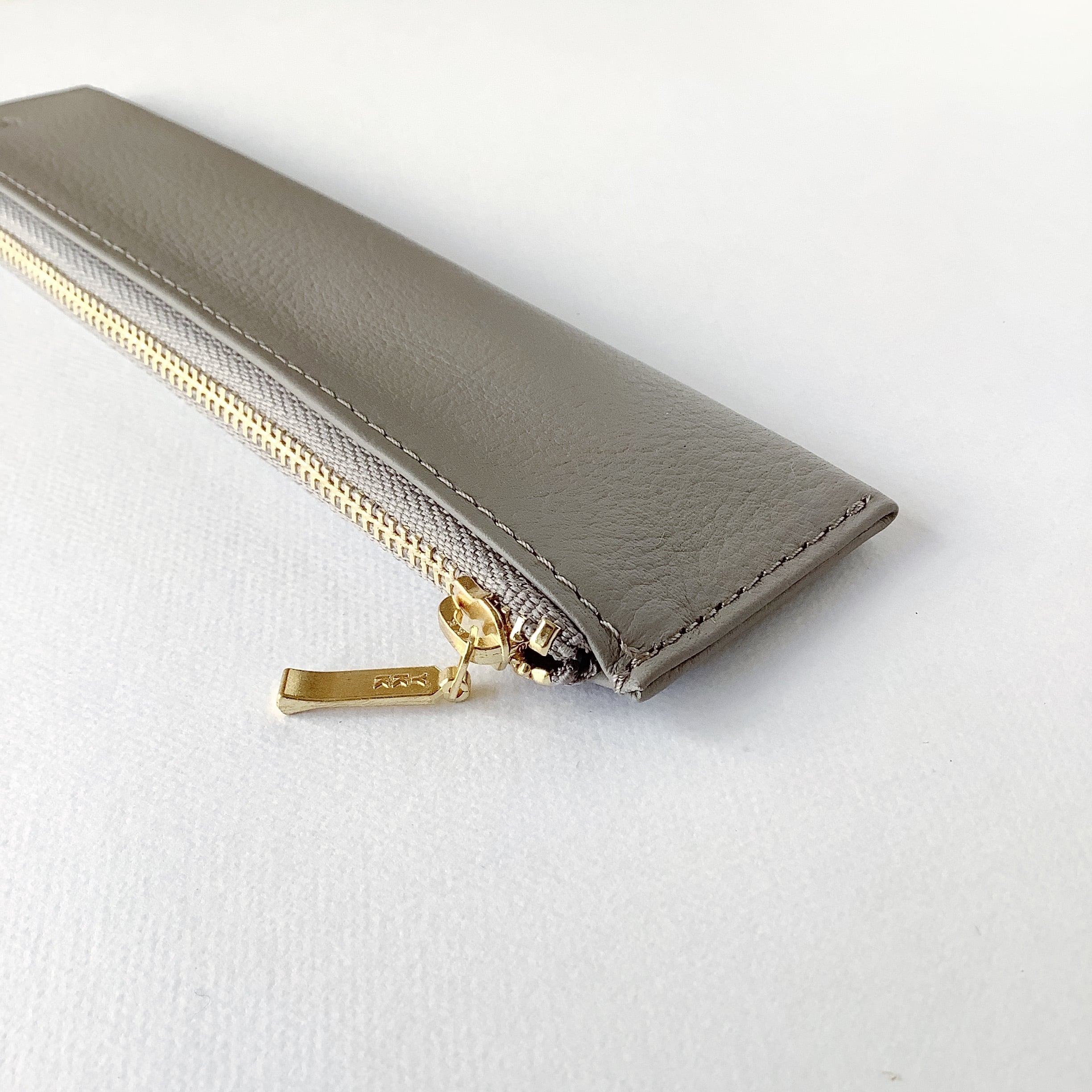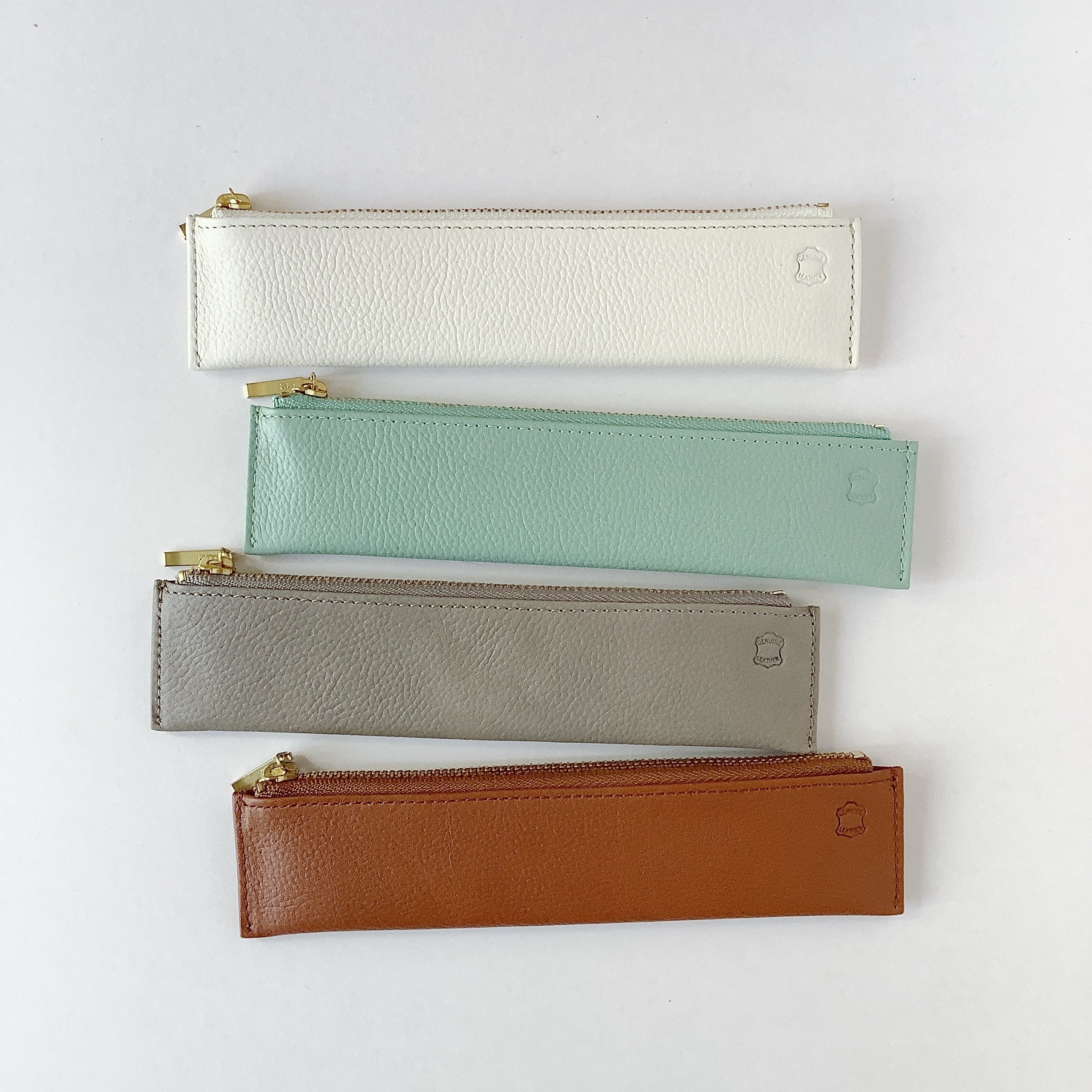 半艶の質感とシボが特徴の落ち着いた風合いのソフトレザーを使用したペンケース。