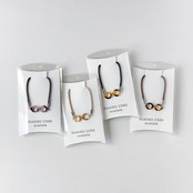 コード両端のシリコン素材の輪っかにメガネのテンプルを通してから、バネ状の調整パーツを上にスライドさせて、ループの隙間をなくすようにしっかりとっても固定します。コードを首の後ろに回してメガネをかけてご使用下さい。