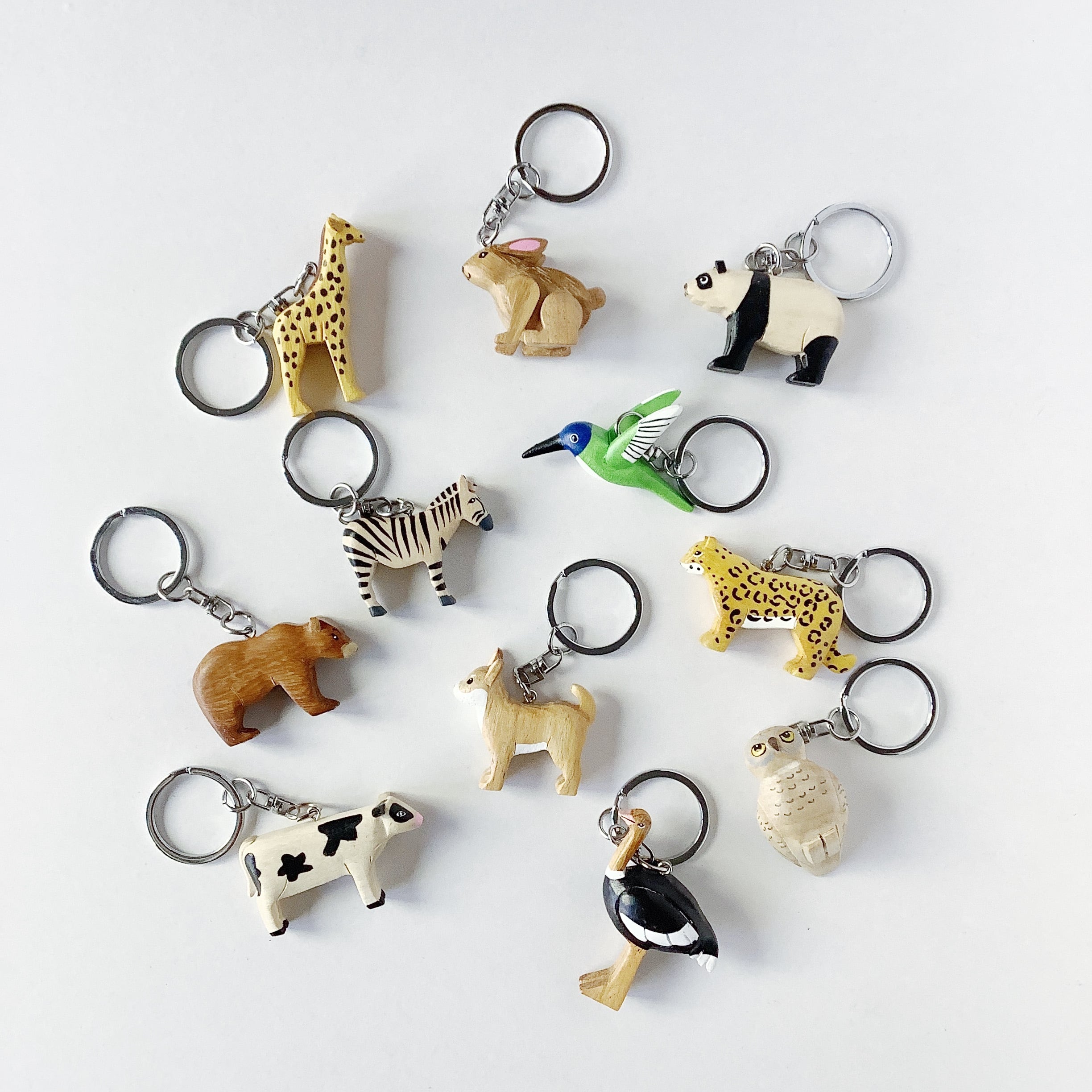 フィリピンのセブ島でひとつひとつハンドメイドで作られた動物の木製キーリング。