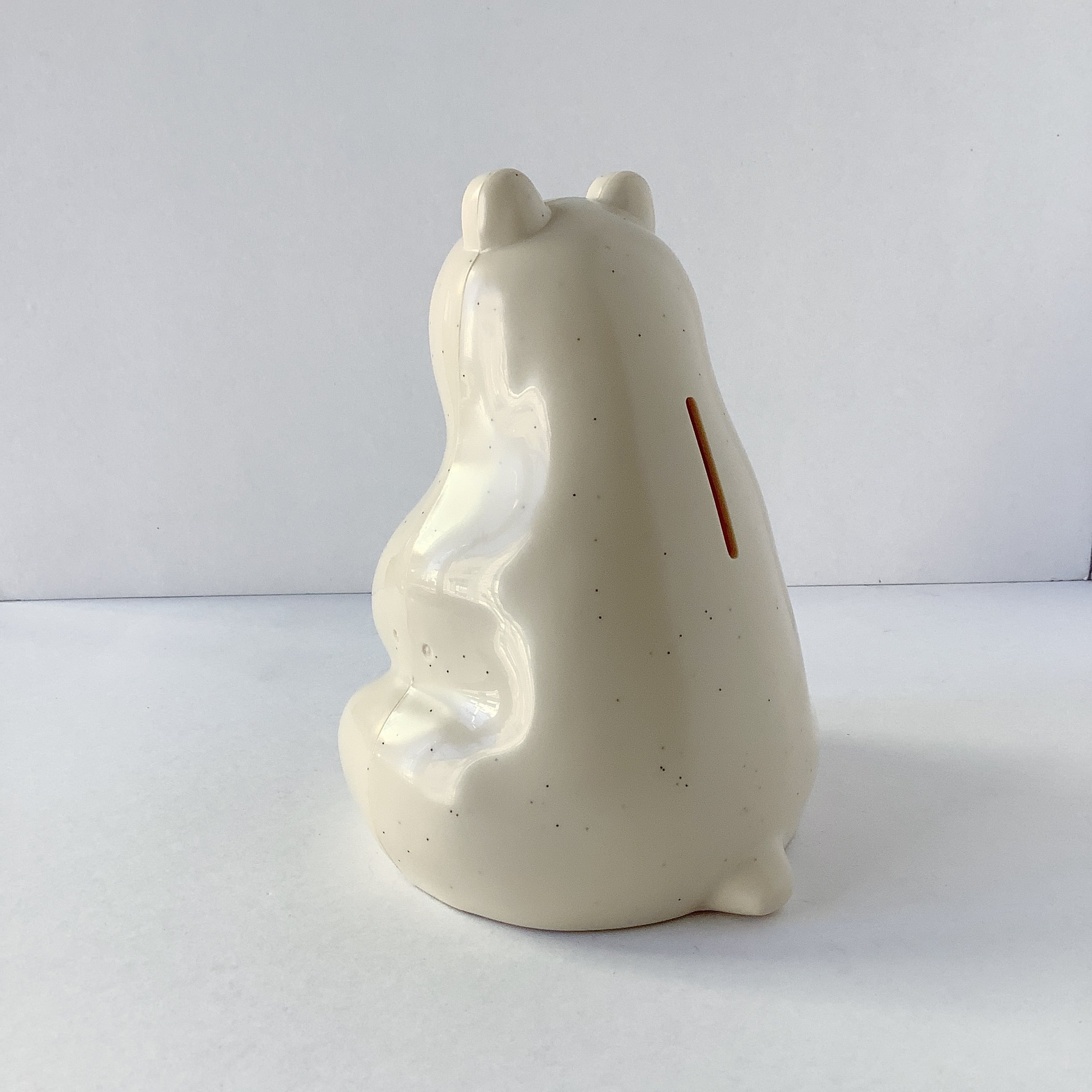 フィンランドの銀行のノベルティだったアイテムの復刻版、なんとも可愛らしいシロクマの貯金箱です。プラスチック製でとても軽く、インテリアにもステキです。
