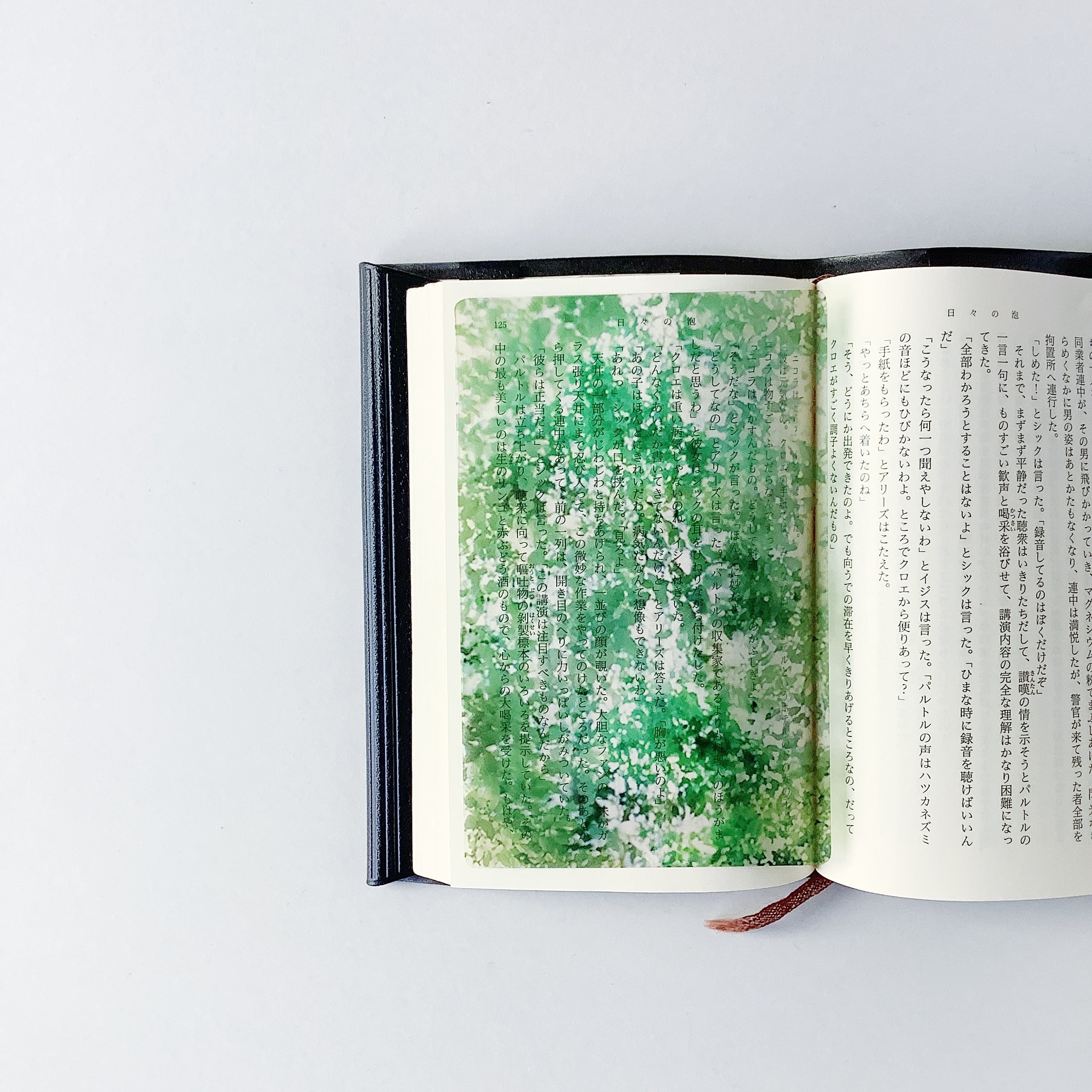 本の挟むと下地が透けて、文字の世界を鮮やかみ彩ります。