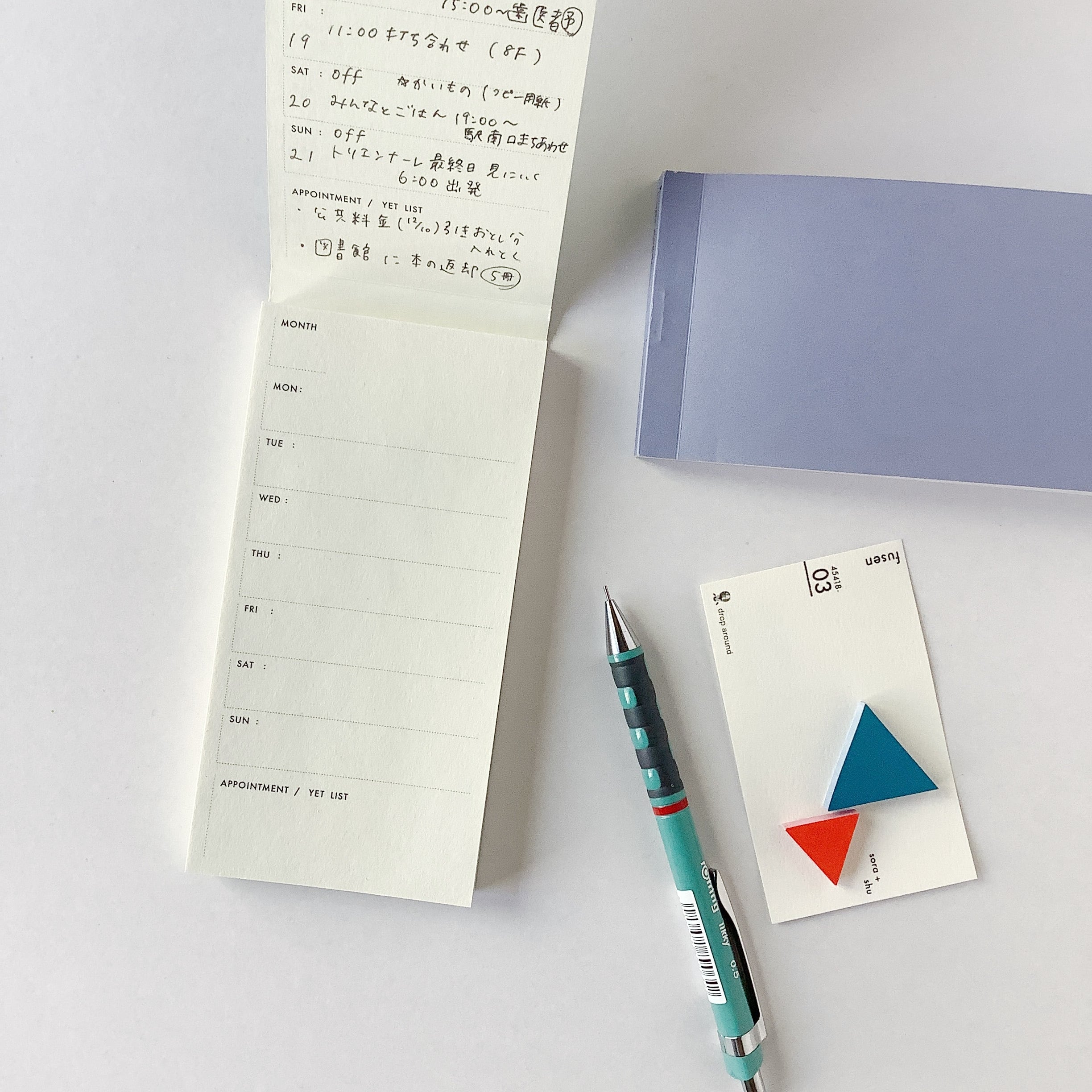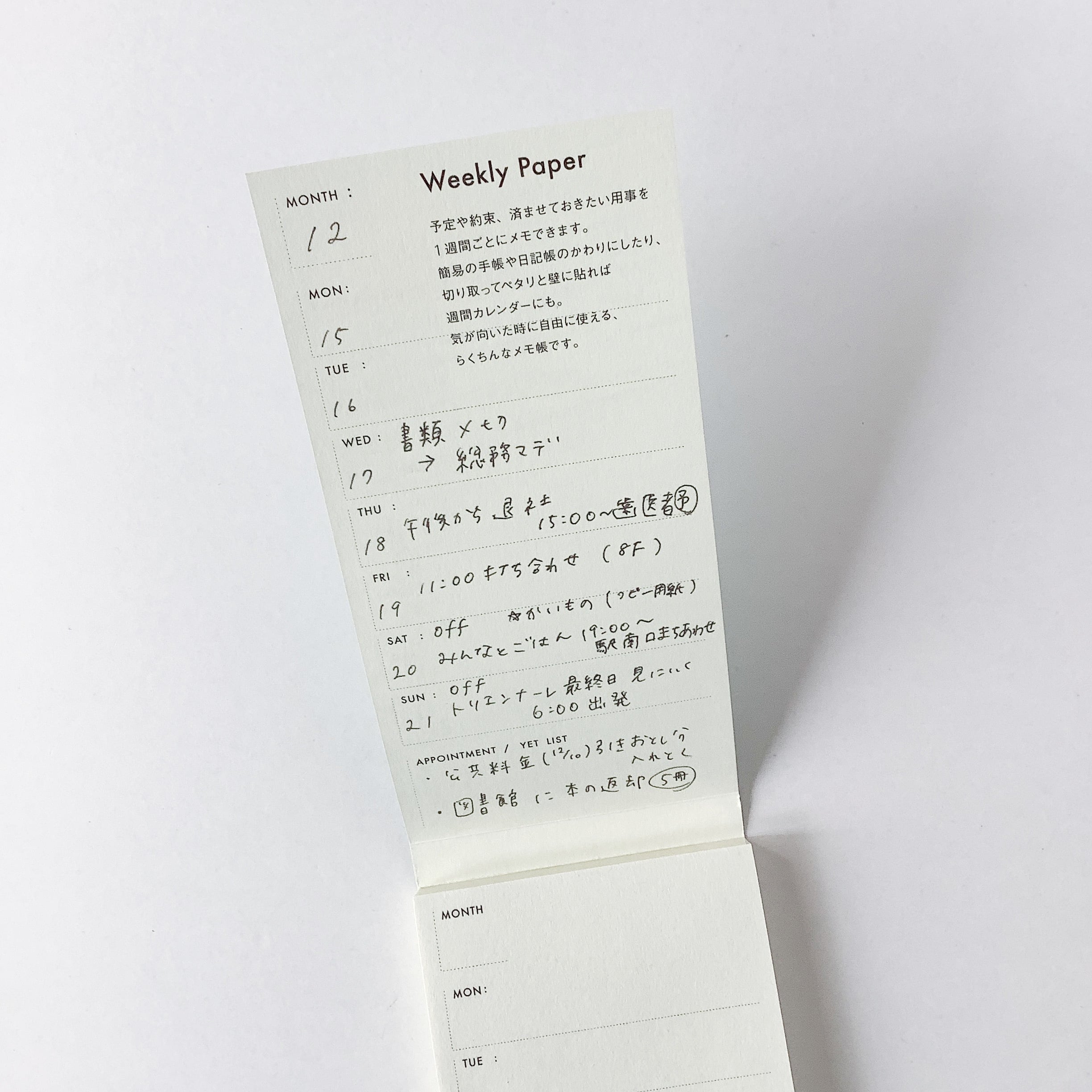簡易の手帳や日記帳の代わりにしたり、切り取って壁に貼れば週間カレンダーにも。