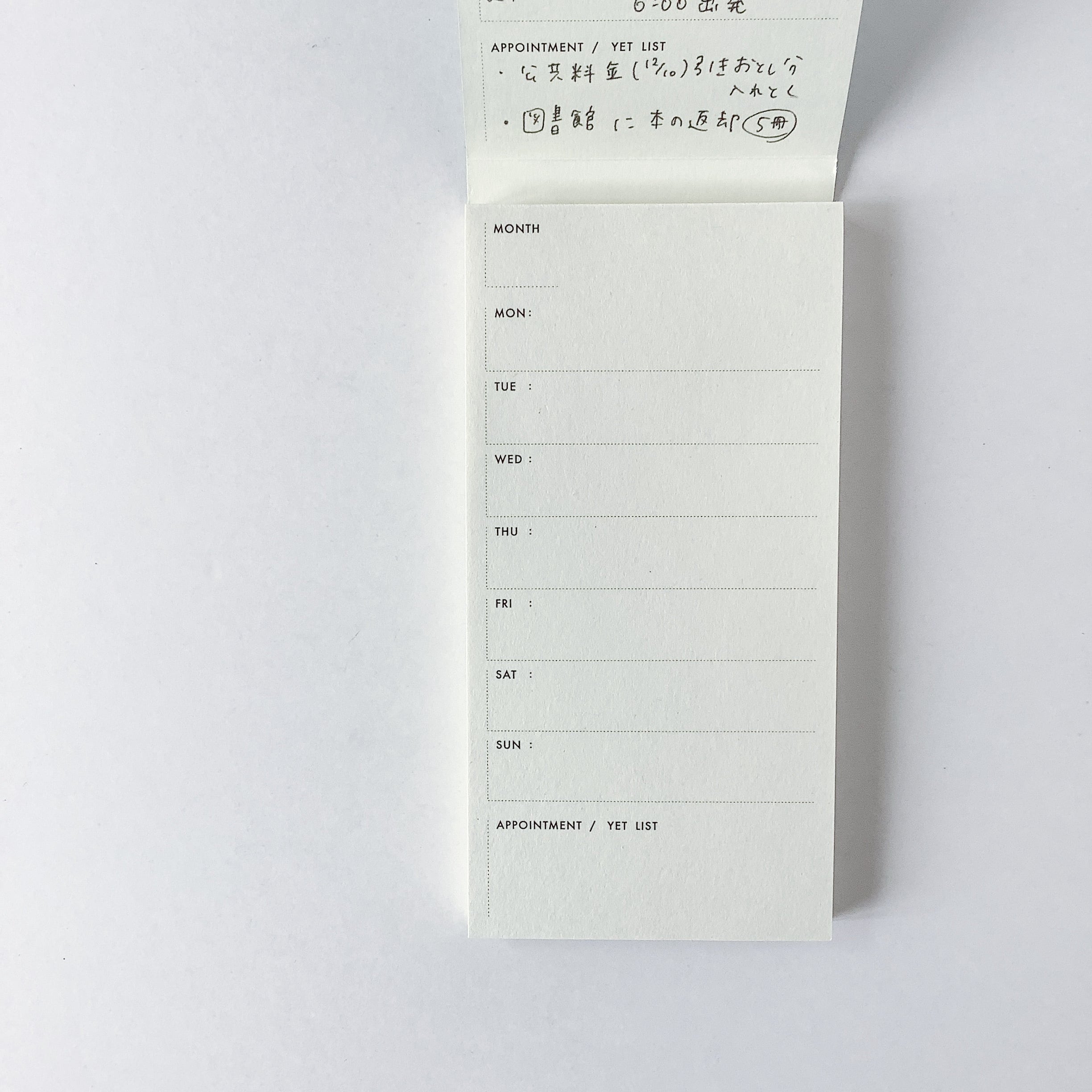 予定や約束、済ませておきたい用事を、1週間ごとにメモできるメモノート。