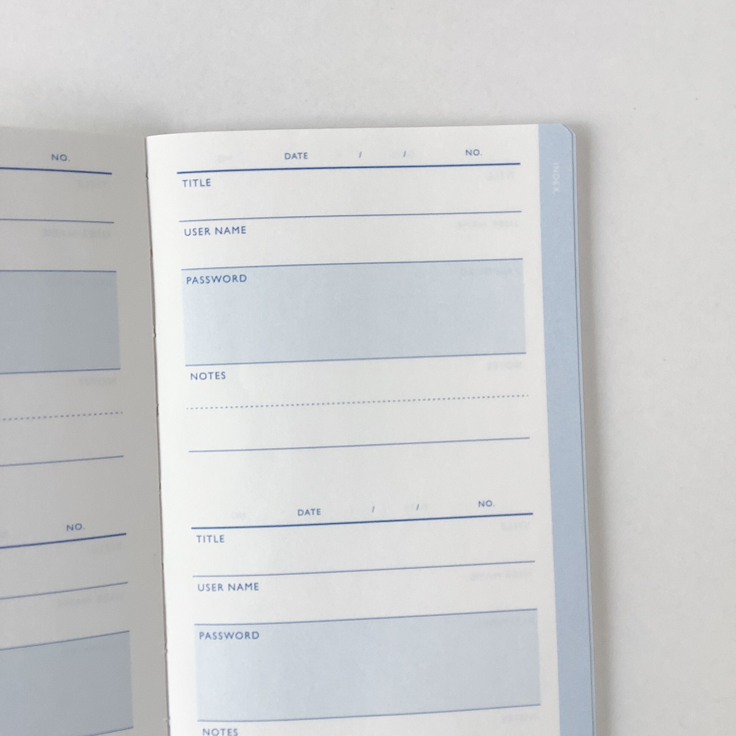 1ページ2アカウント、定期的なパスワード変更にも対応できるよう記入欄も大きめです。