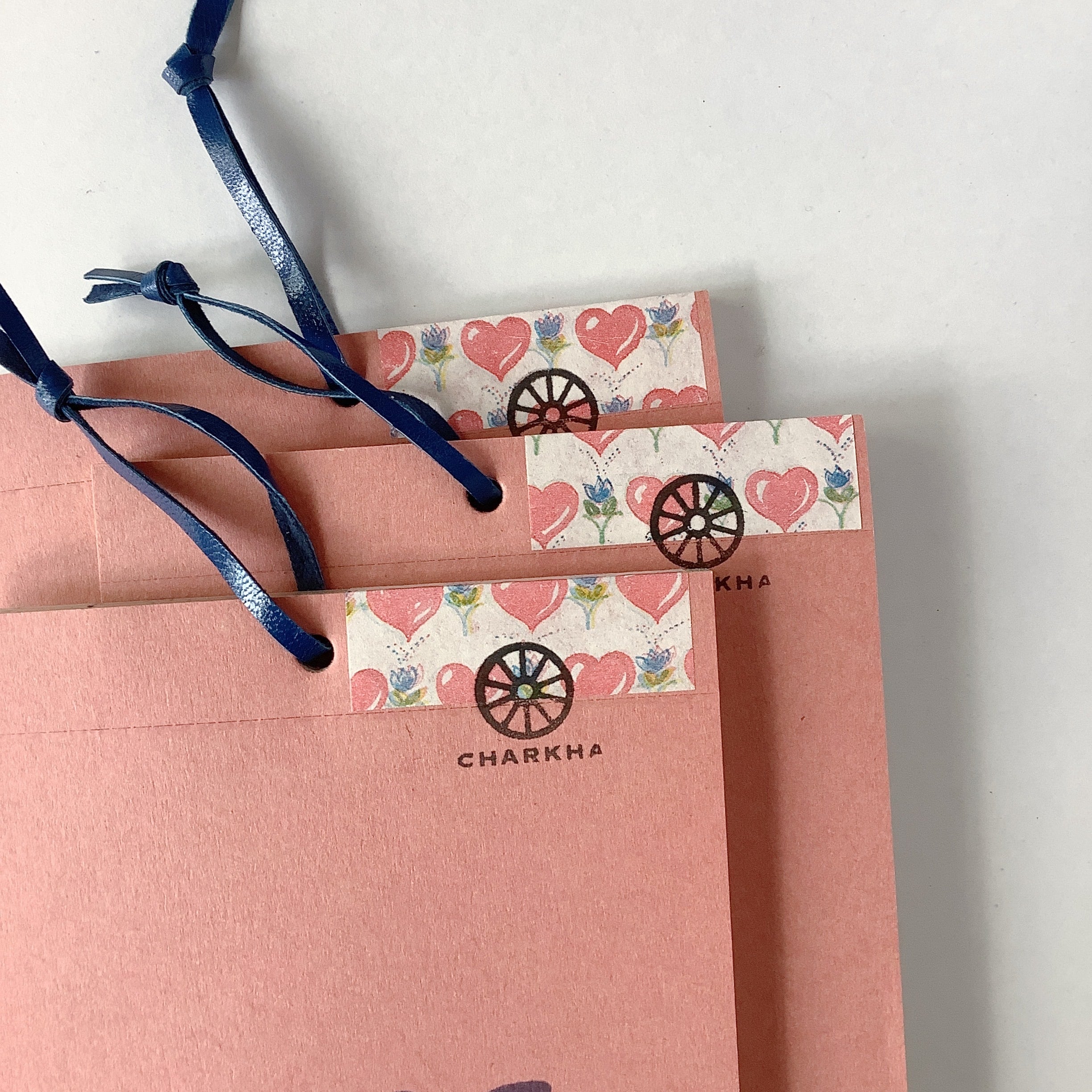 使用している紙はクラフト紙や地模様、漉き込みのあるものなど種類にブルーグレー系の文字を印刷、シンプルながらも色の変化もお楽しみ頂けます。表紙は「トマト」と呼ばれるテクスチャーのある紙を、右肩にはドイツの1970年代のラッピングペーパーの一片をあしらっています。