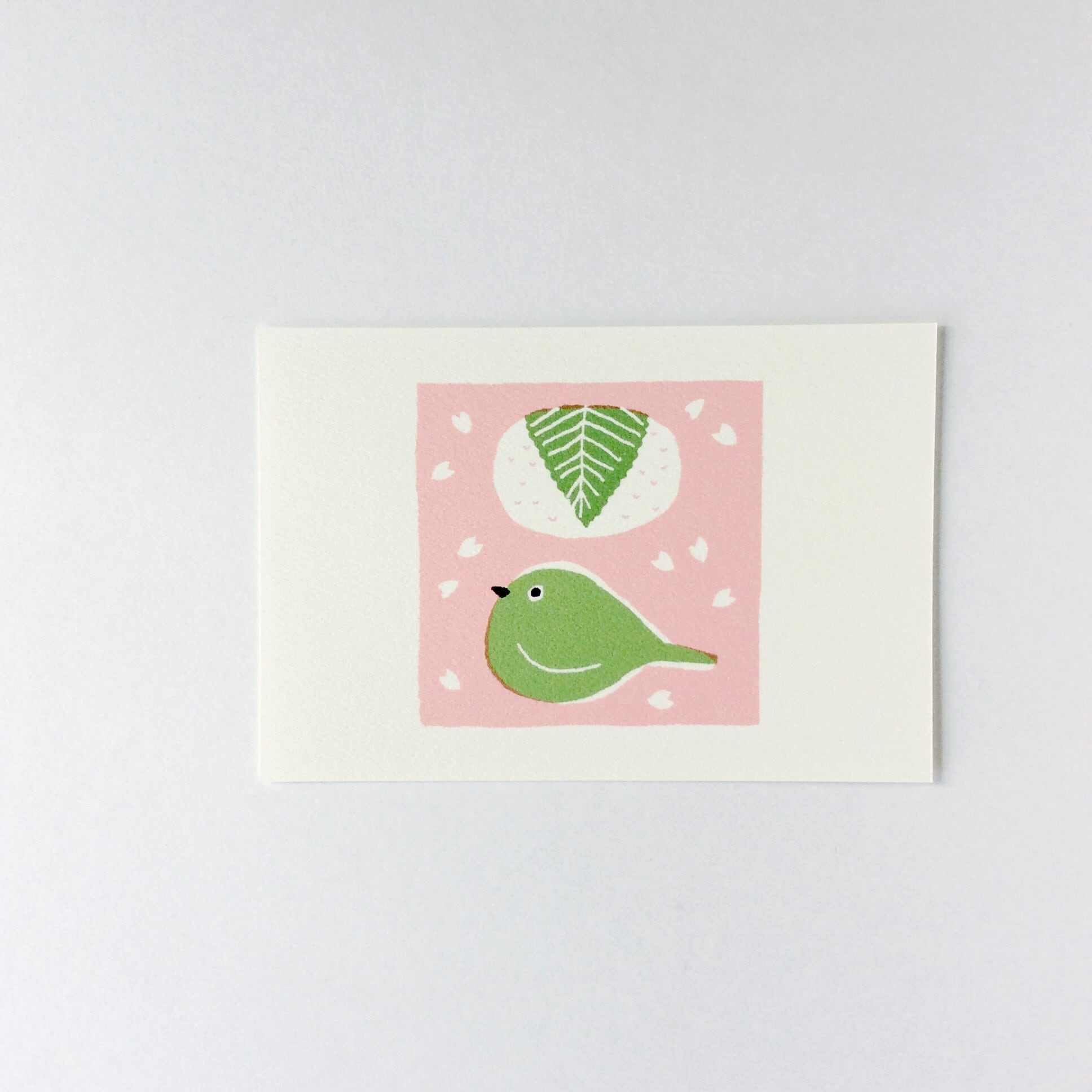 ポストカード 桜餅、メジロ