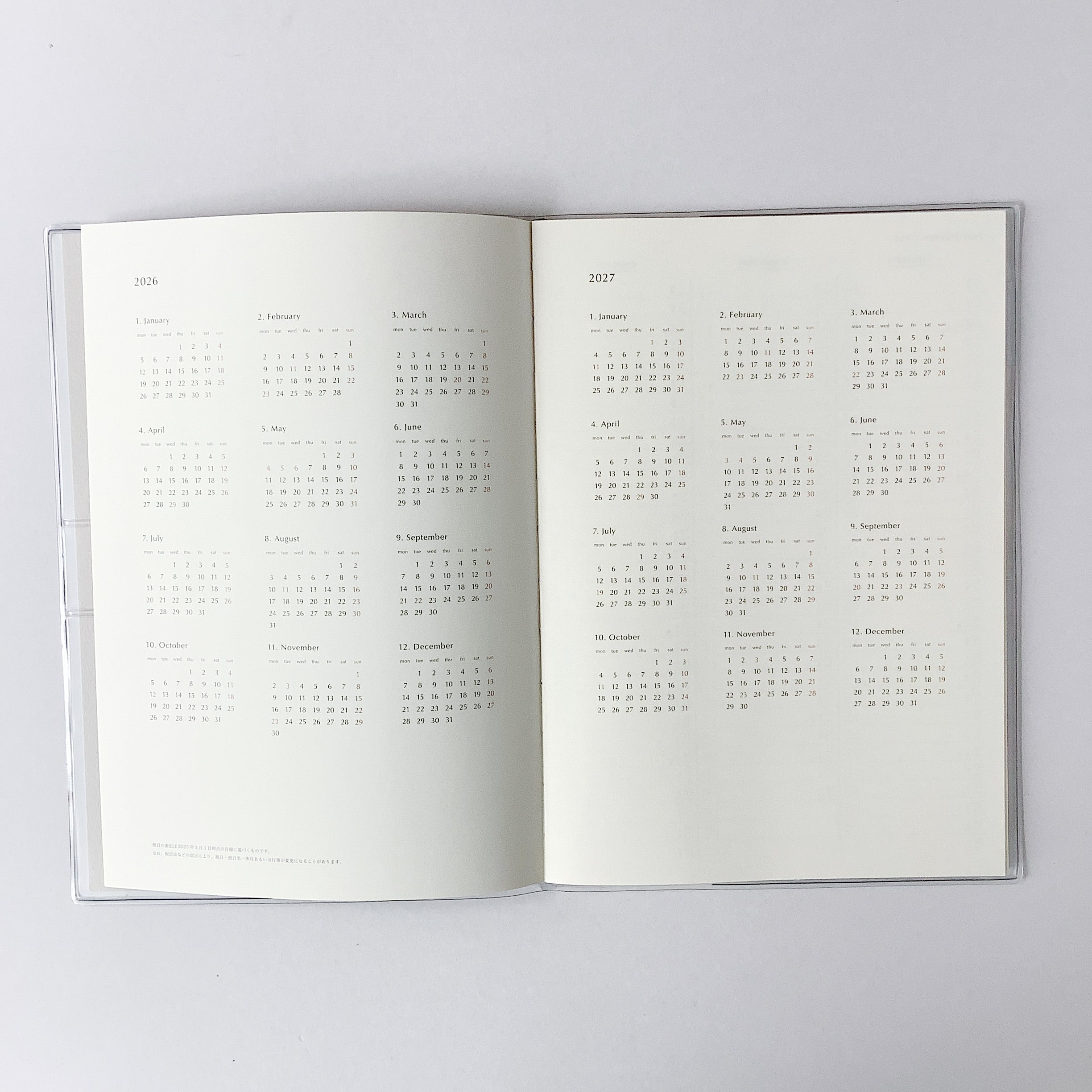 フォーマットは、大判A5サイズの広々書き込めるマンスリーとたっぷりのノートページ(横罫、方眼)。巻頭には、年間スケジュール、マンスリーTO DOも、薄手ながら、充実の内容の1冊です。