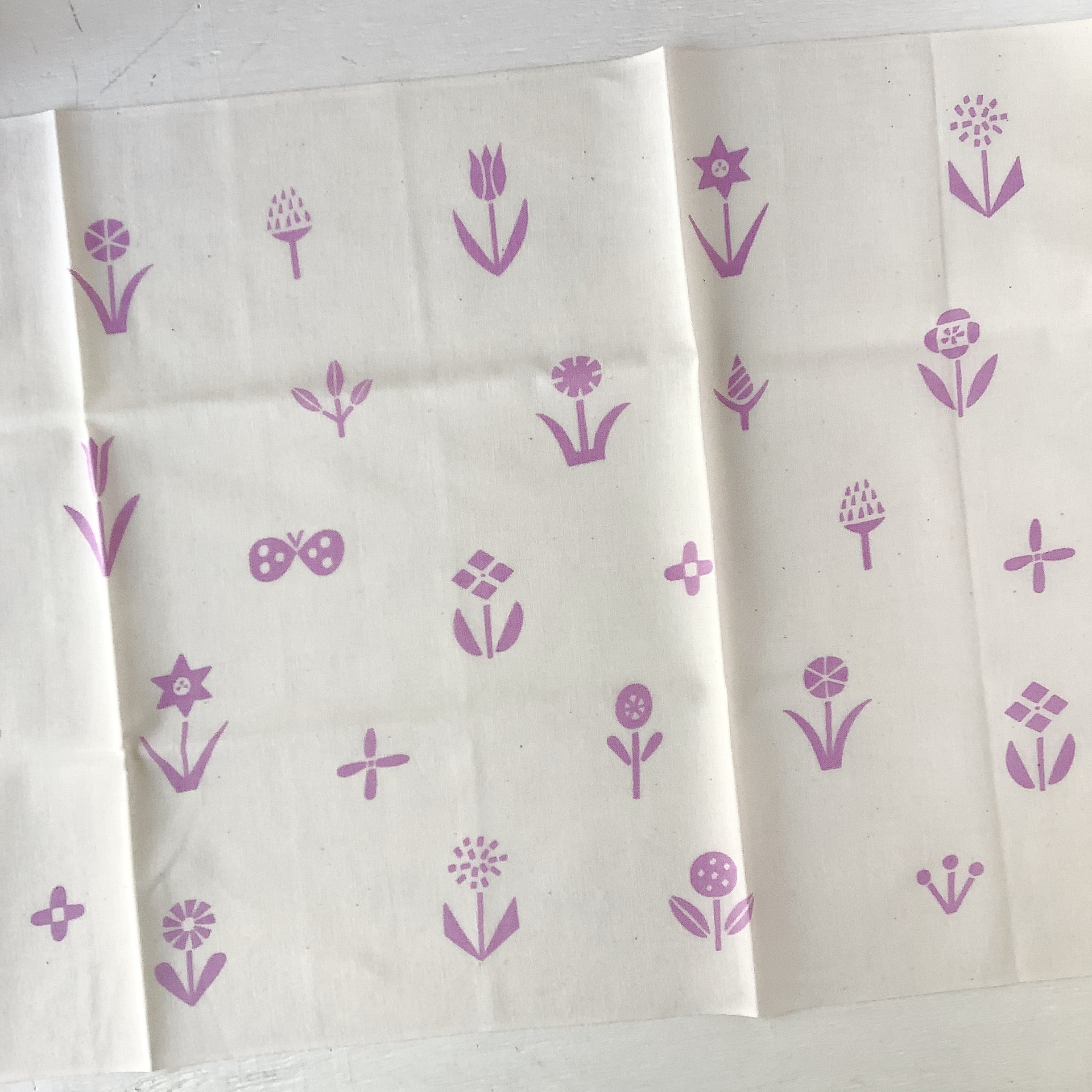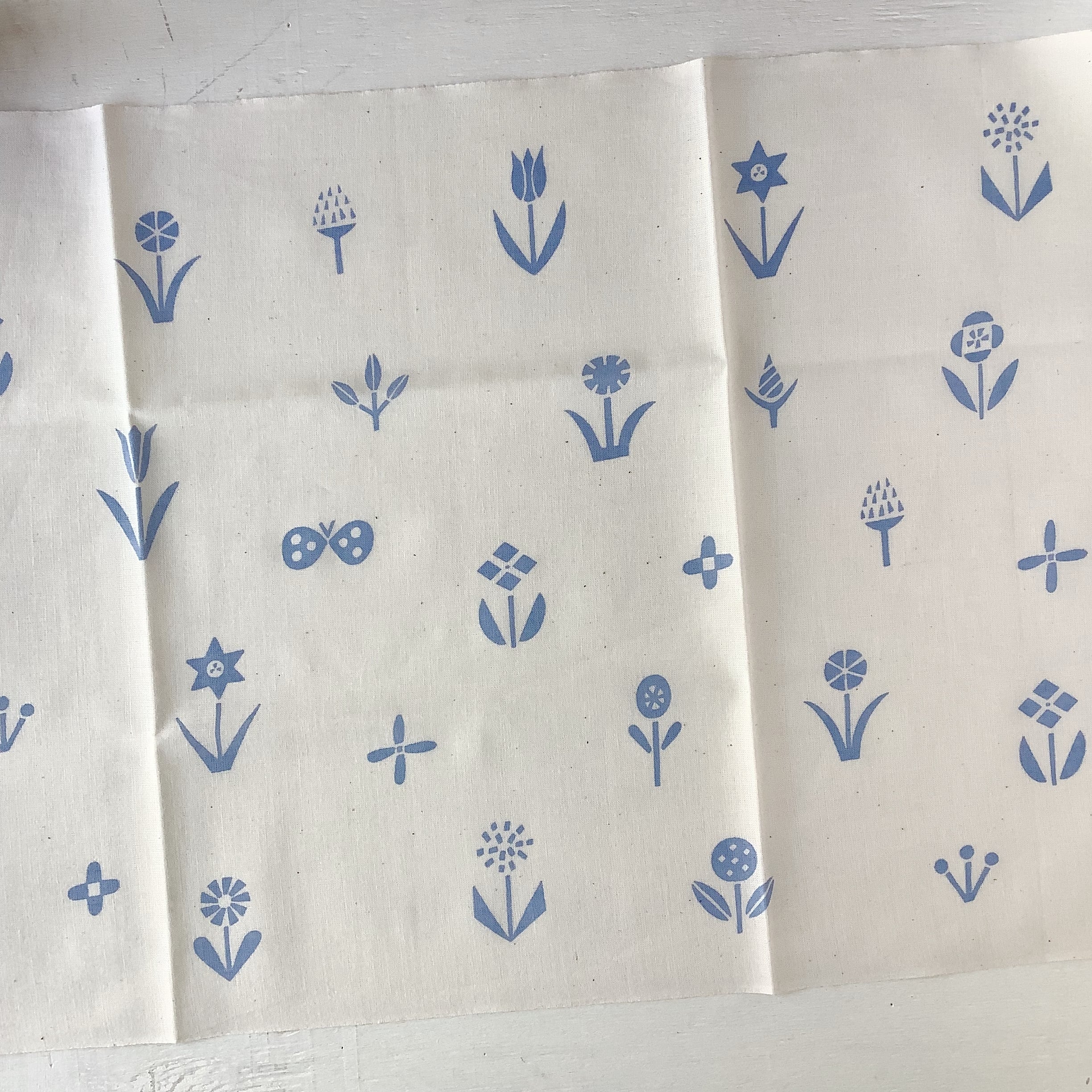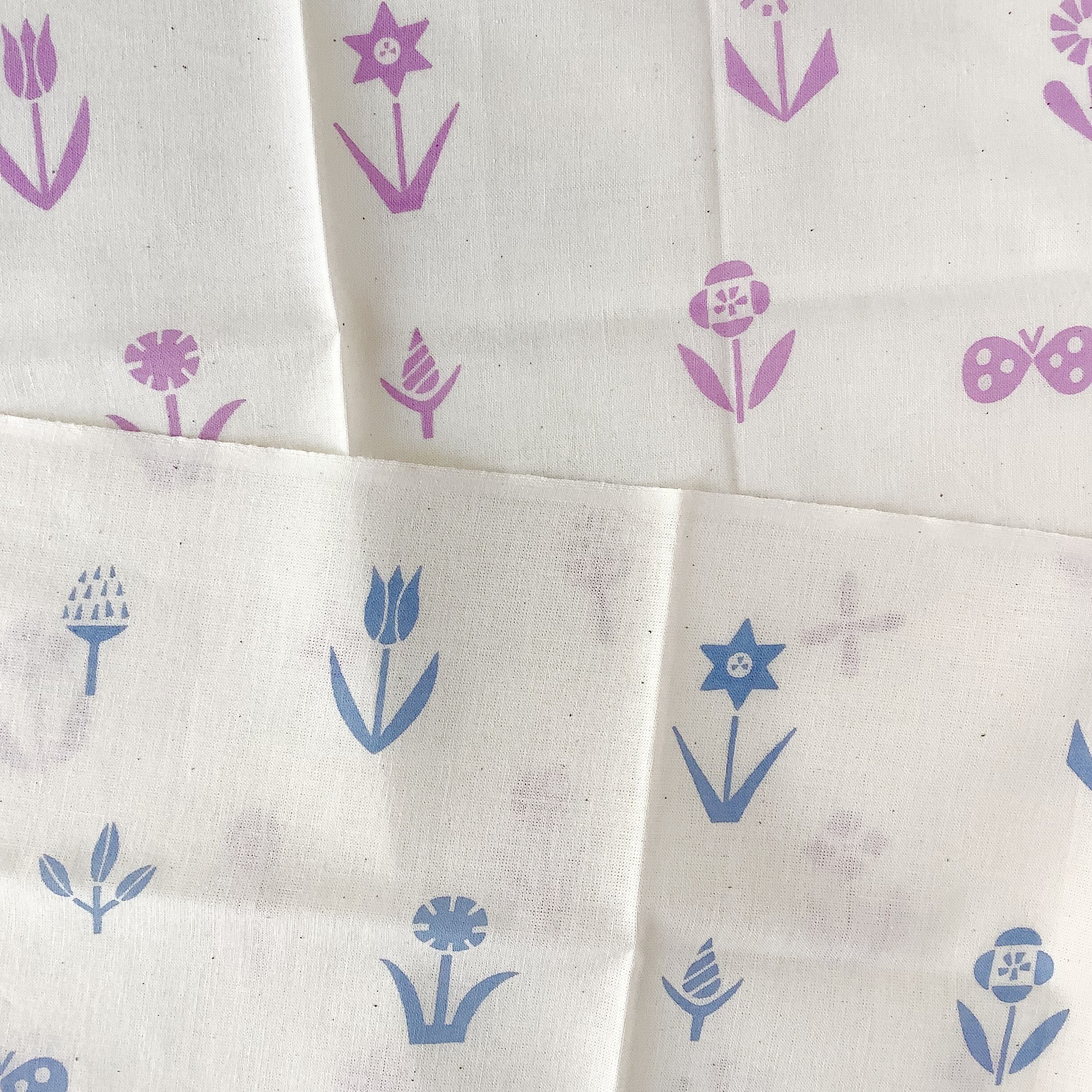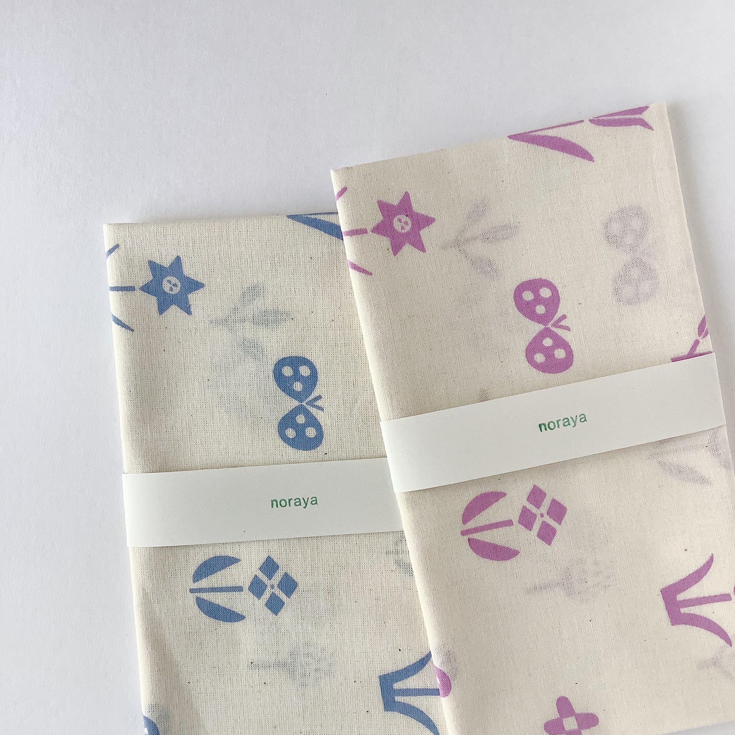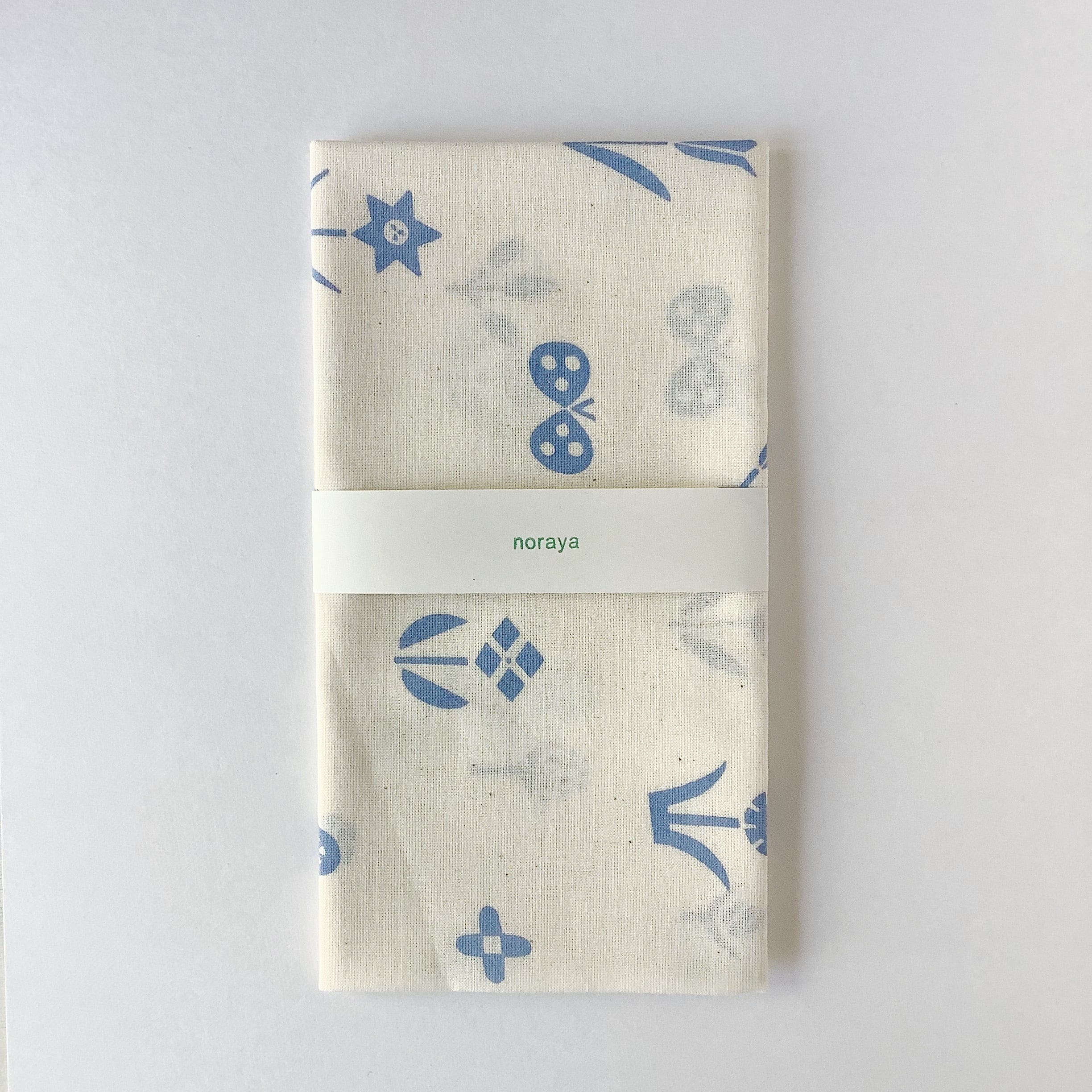 生成りの生地に、手捺染と呼ばれる手法で染め上げた手ぬぐい。