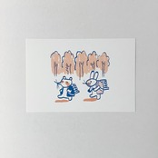 ポストカード たぬきとハイキング
